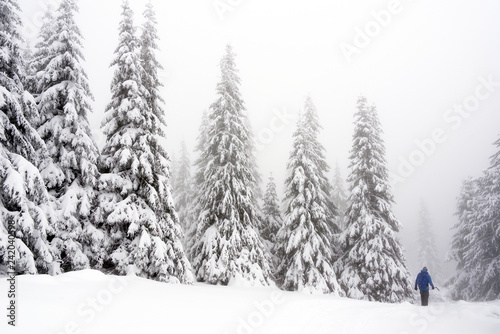 Winter alpine landscape in National Park Retezat, Carpathians, Romania, Europe. Snow covered moutains scenery.
