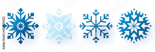Winter and Christmas background of assorted blue and white snowflakes on a white background. Generative AI