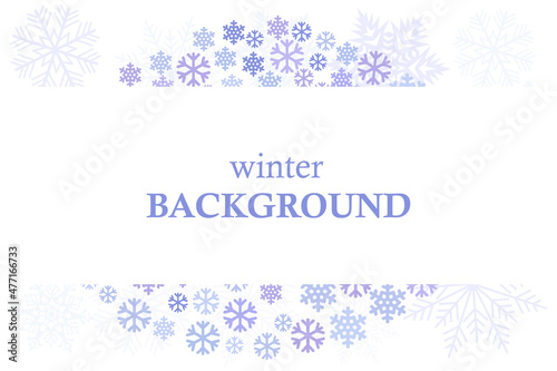 Winter background with snowflakes horizontal, background with winter snow and free space for text, logo, photo, pattern for decorating pages, sketchbook, notebooks, books, posters, banner, etc., holid