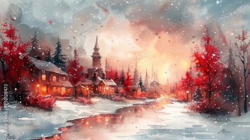Winter City Celebrations: Watercolor Illustration for Merry Christmas and Happy New Year Generative AI