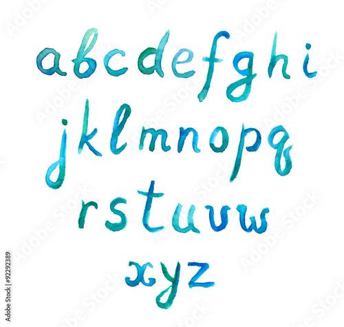 Winter collection of watercolor english alphabet, low case