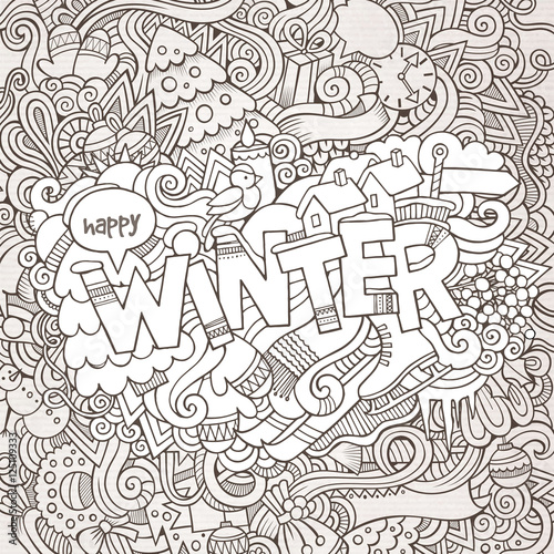 Winter hand lettering and doodles elements background