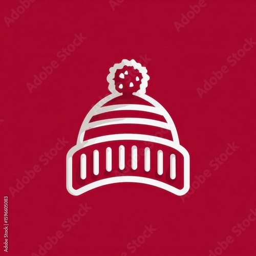 Winter hat design with a pom-pom and stripes on a red background showcasing cozy fashion and seasonal style