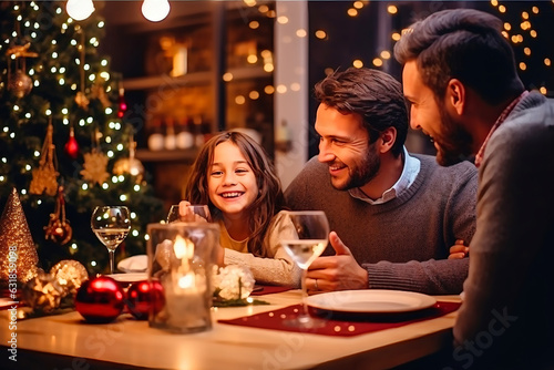 Winter holidays and people concept - lgbt family celebrating christmas and new year. Home holiday. Blurred background. Selective focus.