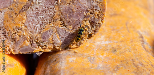 "Winter" kavurma is a Turkic sheep meat dish. The wasp steals meat.