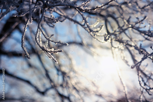 Winter landscape. Trees and plants covered with snow. The beauty of snow covered paths. Snowfall and cooling in tourist areas.