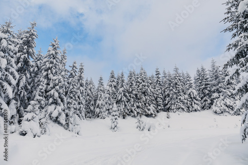 Winter landscape with pine forest