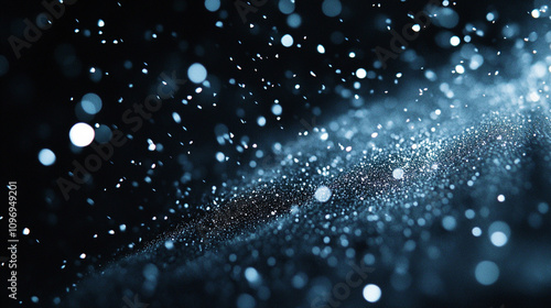 winter morning snow and snowflakes falling gently against a dark, Digital art of shiny glowing snow falling on a dark backdrop, black background texture overlay of winter snow.