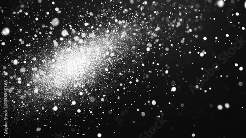 winter morning snow and snowflakes falling gently against a dark, Digital art of shiny glowing snow falling on a dark backdrop, black background texture overlay of winter snow.