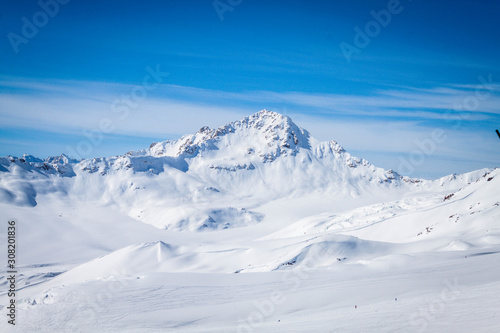 Winter panoramic view of the snowy high mountains of Elbrus in the Russia