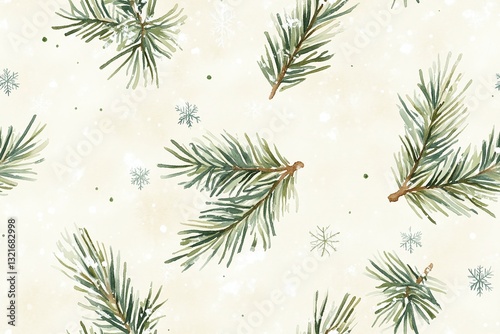 Winter pine branches pattern nature digital artwork cozy environment top-down view seasonal aesthetics