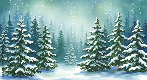Winter Pine Forest with Snowfall - Tranquil Nature Background
