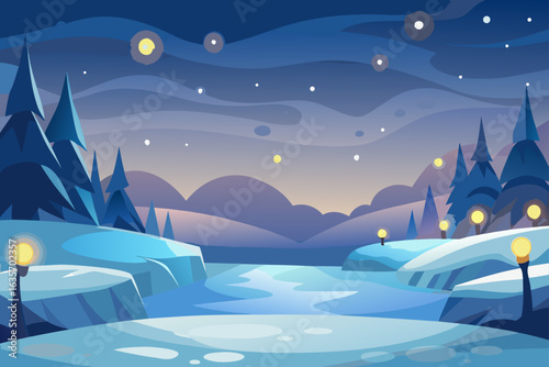 Winter Plateau Background With Glowing Lights