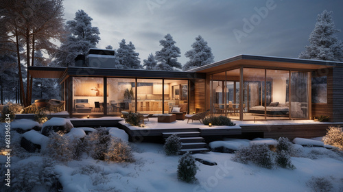 Winter Retreat: Illuminated Scandinavian Home Amidst Snowfall