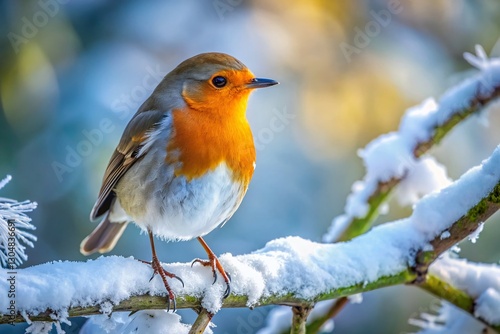 Winter Robin Perched on Snowy Branch, Candid Wildlife Photography