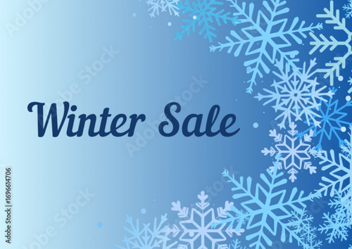 Winter sale background with snowflakes, shopping bags, gift boxes and festive decorations, clean design for seasonal promotions