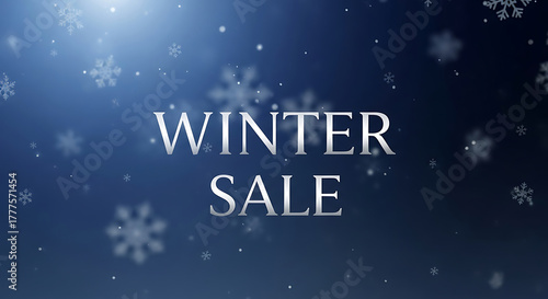 Winter Sale text with falling snowflakes and blue gradient background