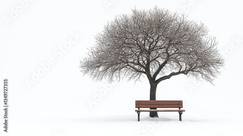 Winter scene, solitary tree, park bench