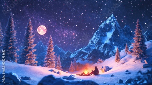 Winter Solitude Campfire Beneath Starry Night Mountains