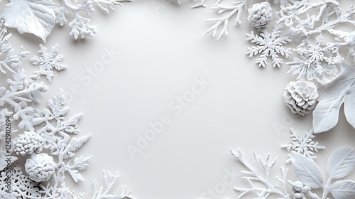Winter white decor frame, holiday background