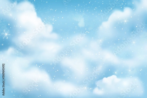 Winter Wonderland Cloud Flat Illustration with Watercolor Sky and Snowflakes