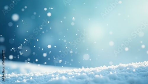 Winter wonderland, fresh snow falling, light blue bokeh background, winter holidays concept.