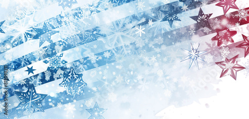 Winter wonderland Memorial Day banner featuring icy stripes and snowflake stars, evoking a cool patriotic theme.