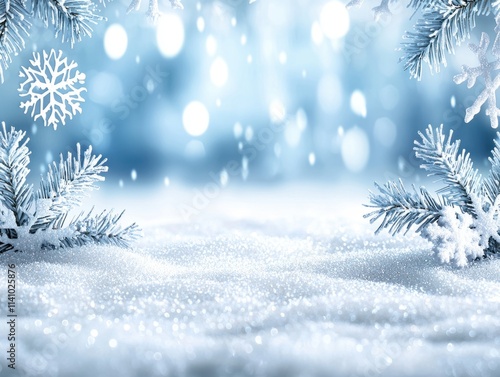 Winter wonderland scene with snowflakes and pine branches frozen landscape digital art serene ambience close-up view tranquility