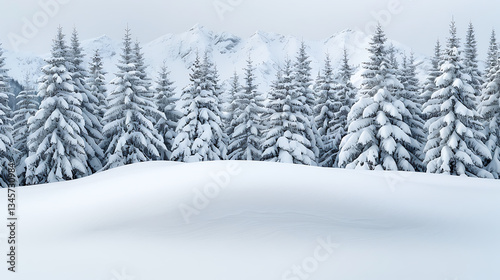 Winter Wonderland Snow Covered Pines and Mountains