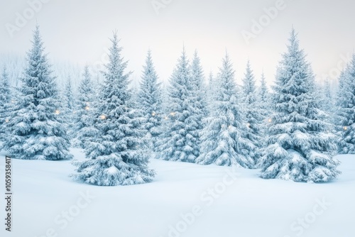 Winter Wonderland Snow Covered Trees Christmas Lights Festive Season