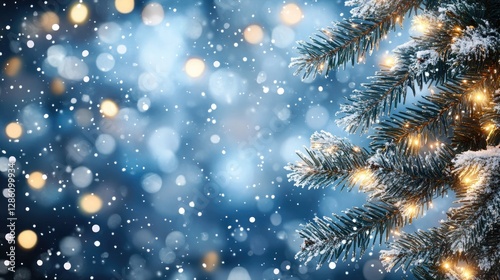Winter Wonderland: Snowy Christmas Tree Branch with Fairy Lights
