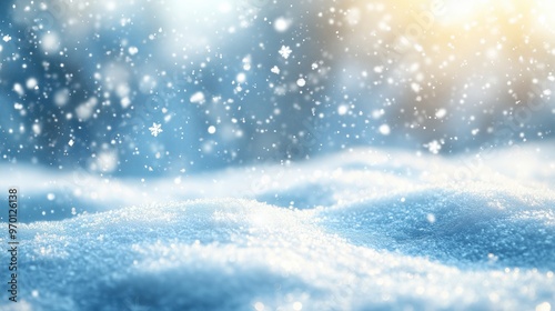 Winter Wonderland Snowy Landscape Background with Falling Snowflakes and Frosty Pine Trees