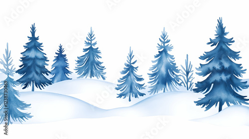 Winter wonderland snowy landscape with blue pine trees; perfect for holiday cards