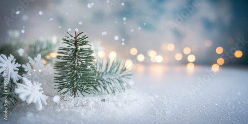 Winter Wonderland Snowy Pine Branches Snowflakes Festive Lights