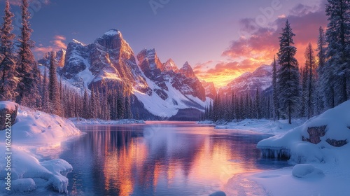 Winter Wonderland: Sunrise over Moraine Lake, Alberta