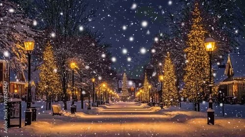 Winter Wonderland with Snow and Holiday Lights