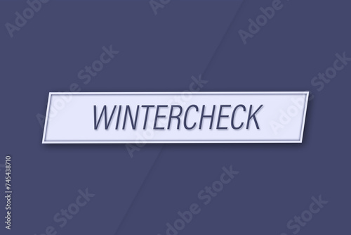Wintercheck. Eine Banner Illustration mit blauem Text, isoliert auf blauem Hintergrund.