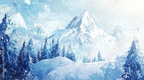 Winter's Embrace: A Snowy Abstract Watercolor Landscape