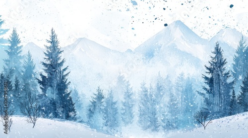 Winter's Embrace: A Snowy Abstract Watercolor Landscape