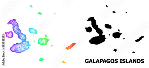 Wire frame and solid map of Galapagos Islands. Vector structure is created from map of Galapagos Islands with intersected random lines, and has spectral gradient.