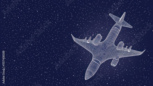 Wireframe Airplane Night Sky Detailed Design Minimalist Art