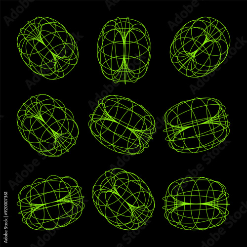 Wireframe lined shapes. Perspective mesh, 3d grid. Low poly geometric elements. Retro futuristic design elements, y2k, vaporwave and synthwave style. Vector illustration