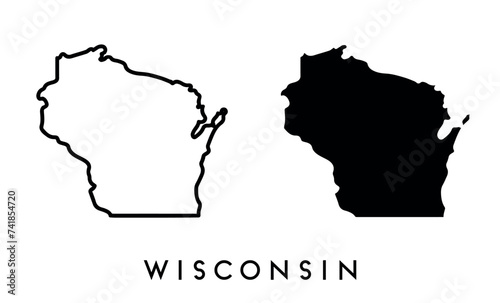 Wisconsin state map silhouette and outline vector set
