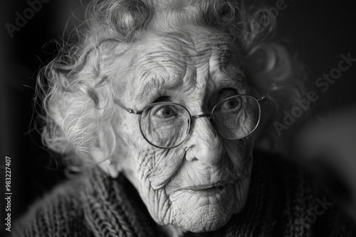 Wisdom of Age: Portrait of Elderly Woman with Glasses in Black and White