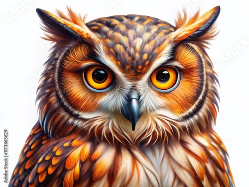 Wise Owl with Detailed Feathers, Isolated on White Background - Perfect for Educational or Wisdom Themed Projects
