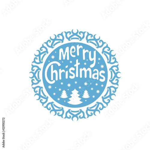 Wishing You A Merry Christmas. Christmas Tree with snowflakes. Christmas round element for Greeting card, invitation, brochure, flyer design. Retro ornament decoration. Vector illustration
