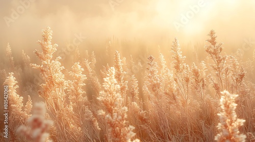 Wispy desert plants and flowers set against a dusty, beige-toned backdrop, capturing the serene yet arid atmosphere of a desert mist.