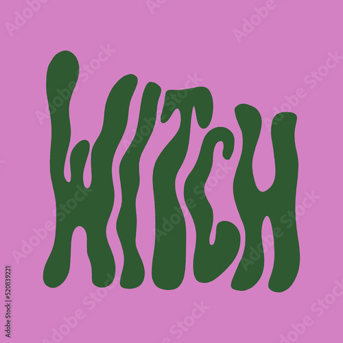 Witch bohemian groovy hand drawn lettering composition. Funky handmade font in boho psychedelic style. Perfect for poster, T-shirt, music albums and more. Vector clipart text isolated inscription
