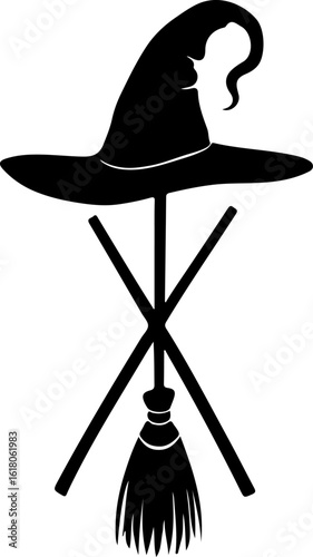 Witch Hat and Broom Silhouettes