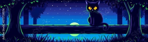 Witch s black cat with glowing eyes, pixel art, black and neon green, 8bit, mysterious and spooky